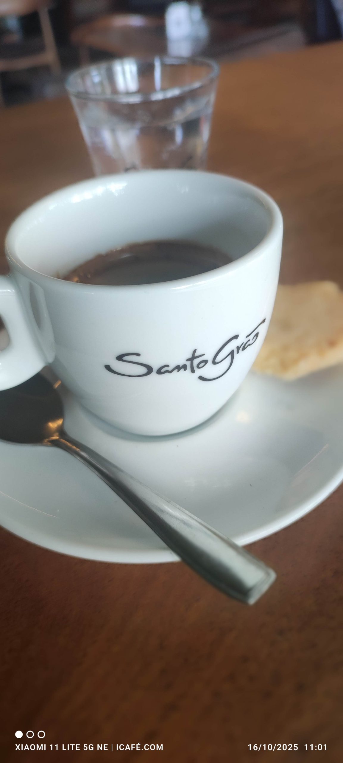 24/10/2025 at 11:30Que lugar maravilhoso! O ambiente do café é super acolhedor e bem iluminado, com uma decoração incrível que faz você se sentir em casa. A variedade de cafés é impressionante, e tem opções deliciosas de sanduíches, saladas e sobremesas para acompanhar. Fui pela manhã e o local estava bem tranquilo, o que foi ótimo para uma pausa relaxante. O atendimento foi impecável, com destaque para o Pedro, que fez a diferença com sua simpatia e dedicação. O Santo Grão realmente tem uma equipe sensacional – Daiane, Fábio e Roberta, muito obrigada pela atenção e profissionalismo. É claro que é um lugar que vale a pena voltar e, sinceramente, é um verdadeiro refúgio na rotina do dia a dia. Gestores, valorizem essa equipe incrível! 🍰☕🌿